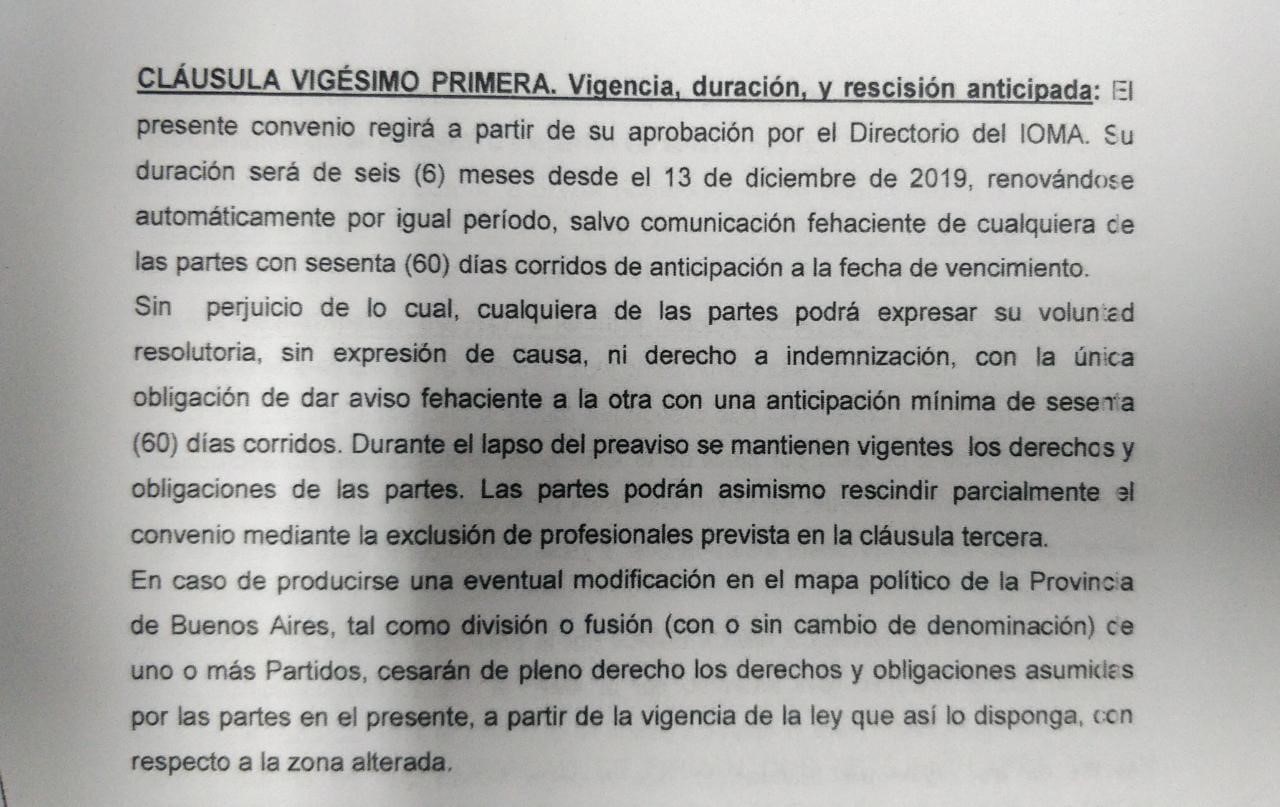 El convenio IOMA-AMP sigue vigente hasta que una de las partes lo denuncie con un preaviso de 60 días.